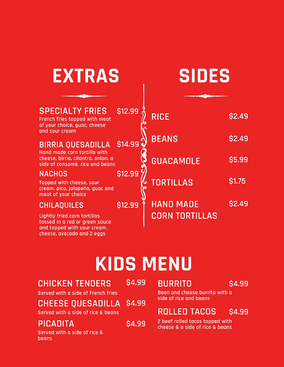 Welcome to Taqueria Rojas, a delightful gem located at 3518 E Rte 66 #111 in Flagstaff, AZ. This family-owned taco shop is a haven for lovers of authentic Mexican cuisine. The menu is a vibrant offering of flavorful tacos, with each priced around $4.49, featuring options like Asada, Carnitas, and even Birria tacos, which have received rave reviews from patrons.